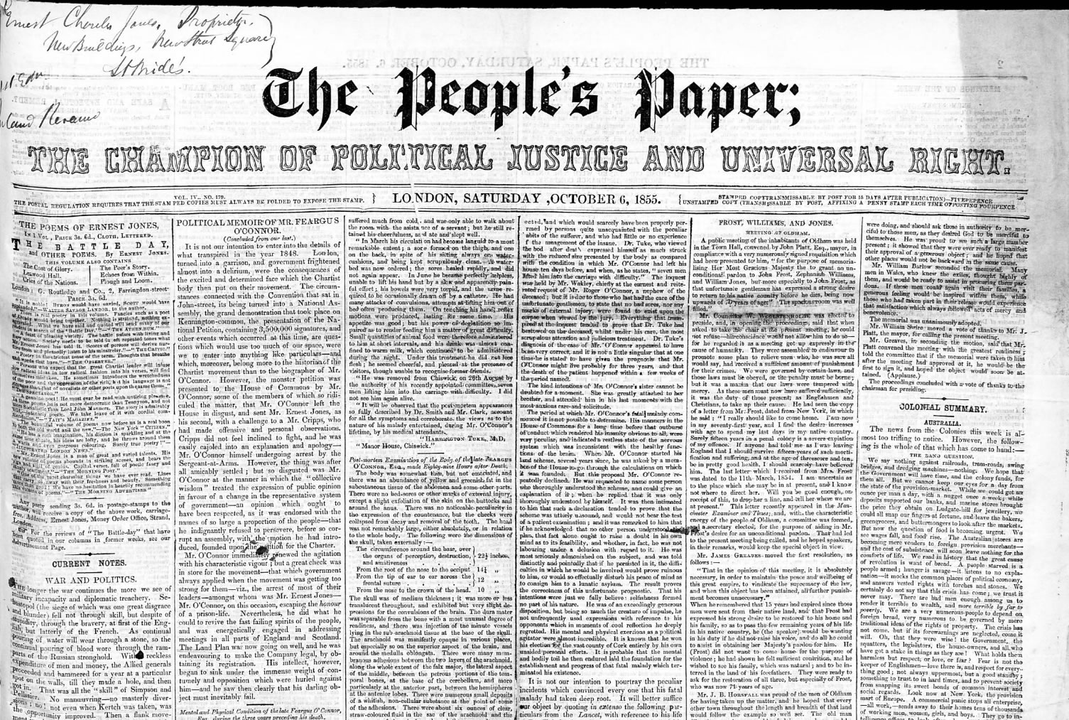 (1852-1858): Semanário cartista publicado de Maio de 1852 até Junho de 1858 em Londres; entre Outubro de 1852 e Dezembro de 1856 Marx e Engels colaboraram no jornal, ajudando também a redigi-lo. Em Junho de 1858 o jornal passou para as mãos de homens de negócios ingleses.