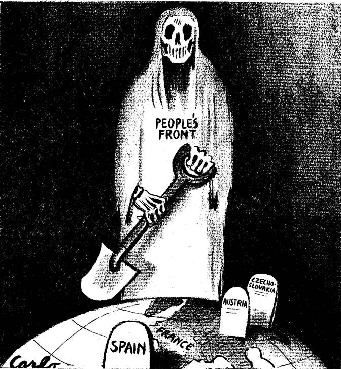Just en sådan bild av kommunistpartiet som kämpar ensamt mot fienden – även när fienden inte är Spaniens ”demokratiska Folkfront” utan en avskyvärd fascistgrupp som Nazi Bund i Madison Square Garden den 20 februari – är vad stalinistiska ledarskap över hela världen är fast beslutna inte ska visas någonstans. Det stalinistiska ledarskapets mest grundläggande mål är ”de demokratiska krafternas enhet” – aldrig att framträda som ett självständigt läger.