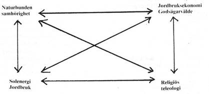Med detta förbehåll, som skall fördjupas senare, menar jag att alla samhällen kan beskrivas som homeostatiska system, vilkas balans upprätthålls av ett sinnrikt samspel mellan teknologi, medvetande, världsuppfattning och samhällsorganisation (se fig 2).